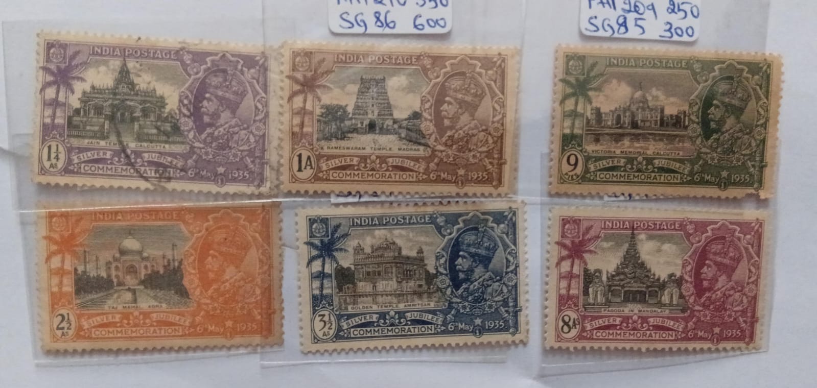 India Stamps – Silver Jubilee of H.M. King George V Reign – Set of 7 Stamps (1/2 Anna Missing)