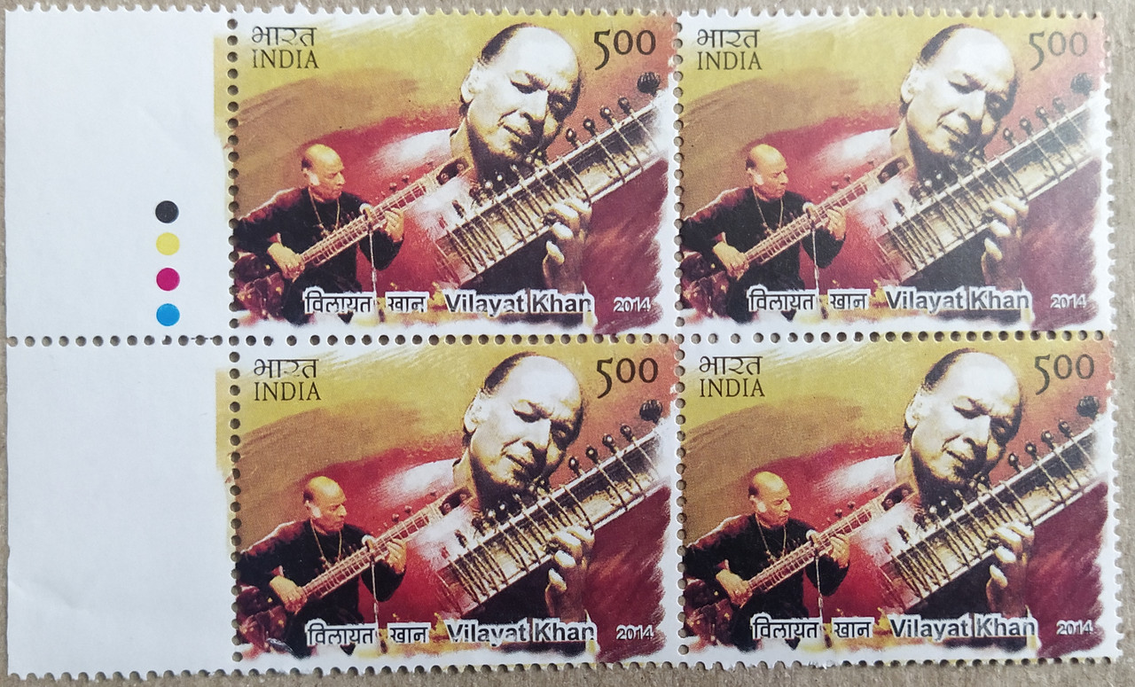 Indian Musicians – Vilayat Khan Personality, Indian Classical Music, Sitar, Music Composer, Padma Shri, Padma Bhushan Rs. 5 (Block of 4 TL Stamp)