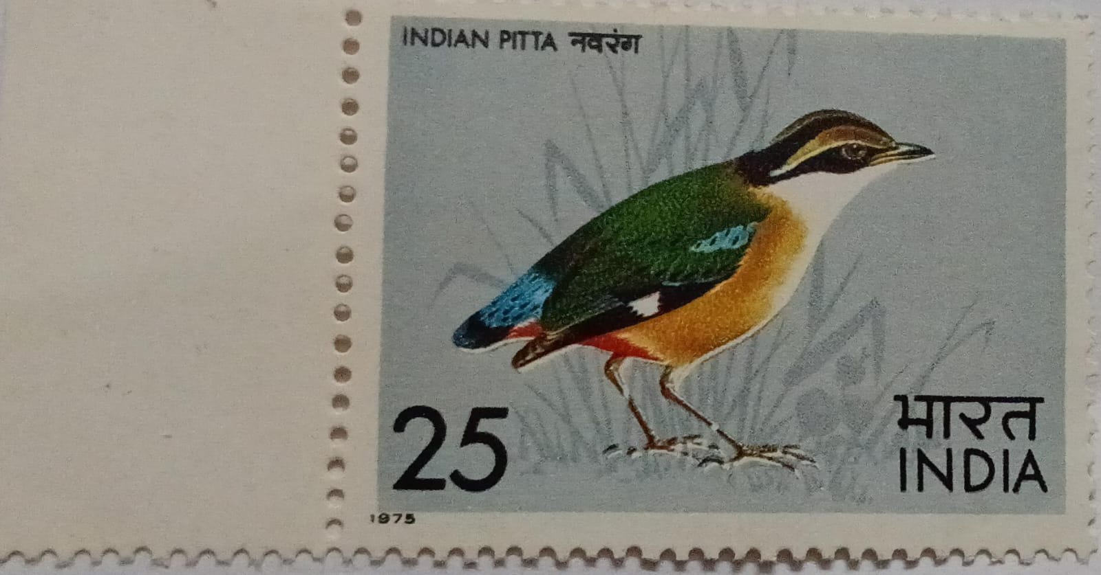 Indian Pitta. Bird, Indian Pitta, Pitta Brachyura, Passerine, 25 P. (Hinged/Gum washed stamp)