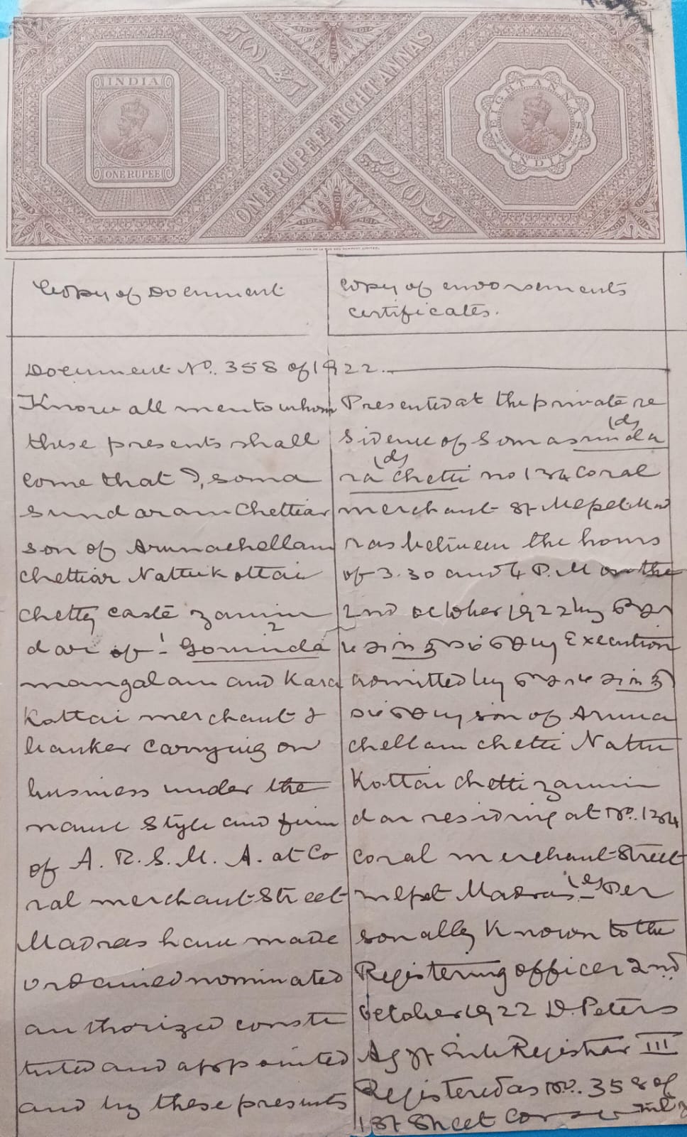 Indian stamp paper 1 rupee 8 Annas-Government of India-GEORGE V watermark “ONE RUPEE UNDER TEN”
