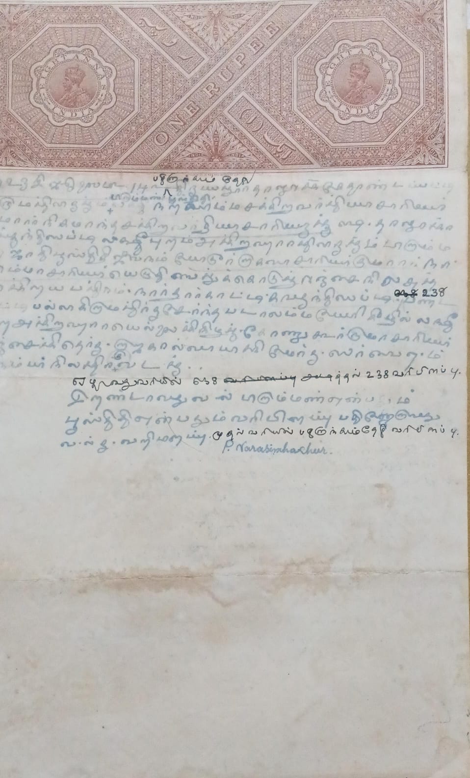 Indian stamp paper 1 rupee- watermark ?ONE RUPEE AND UNDER TEN?- GEORGE V 1923