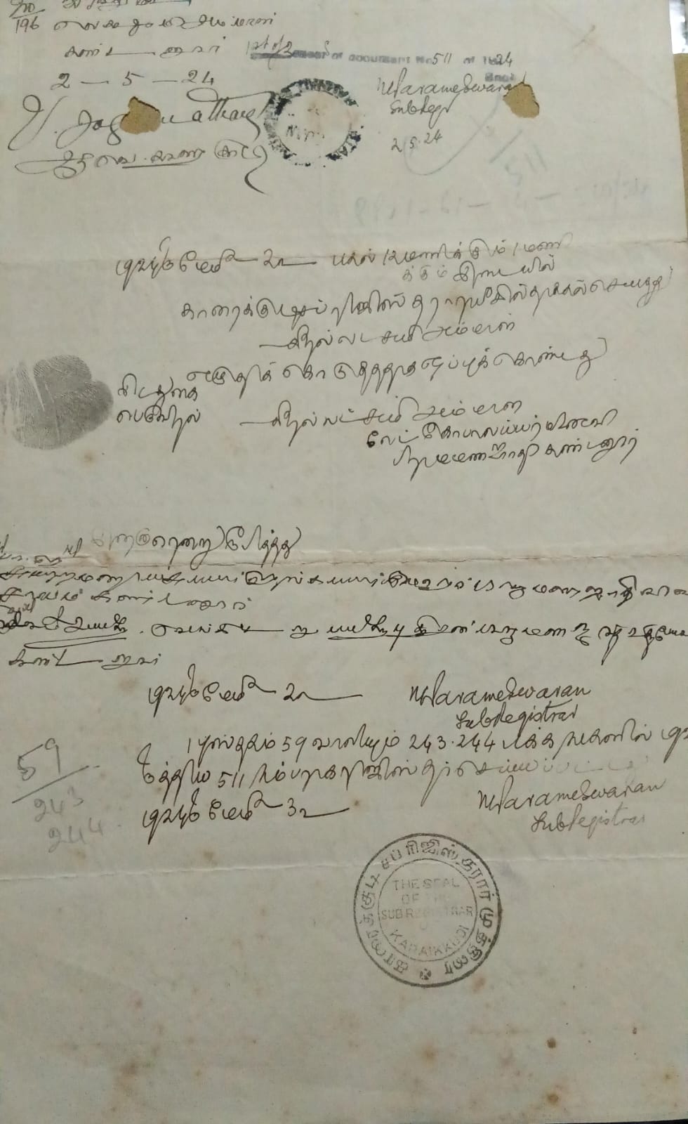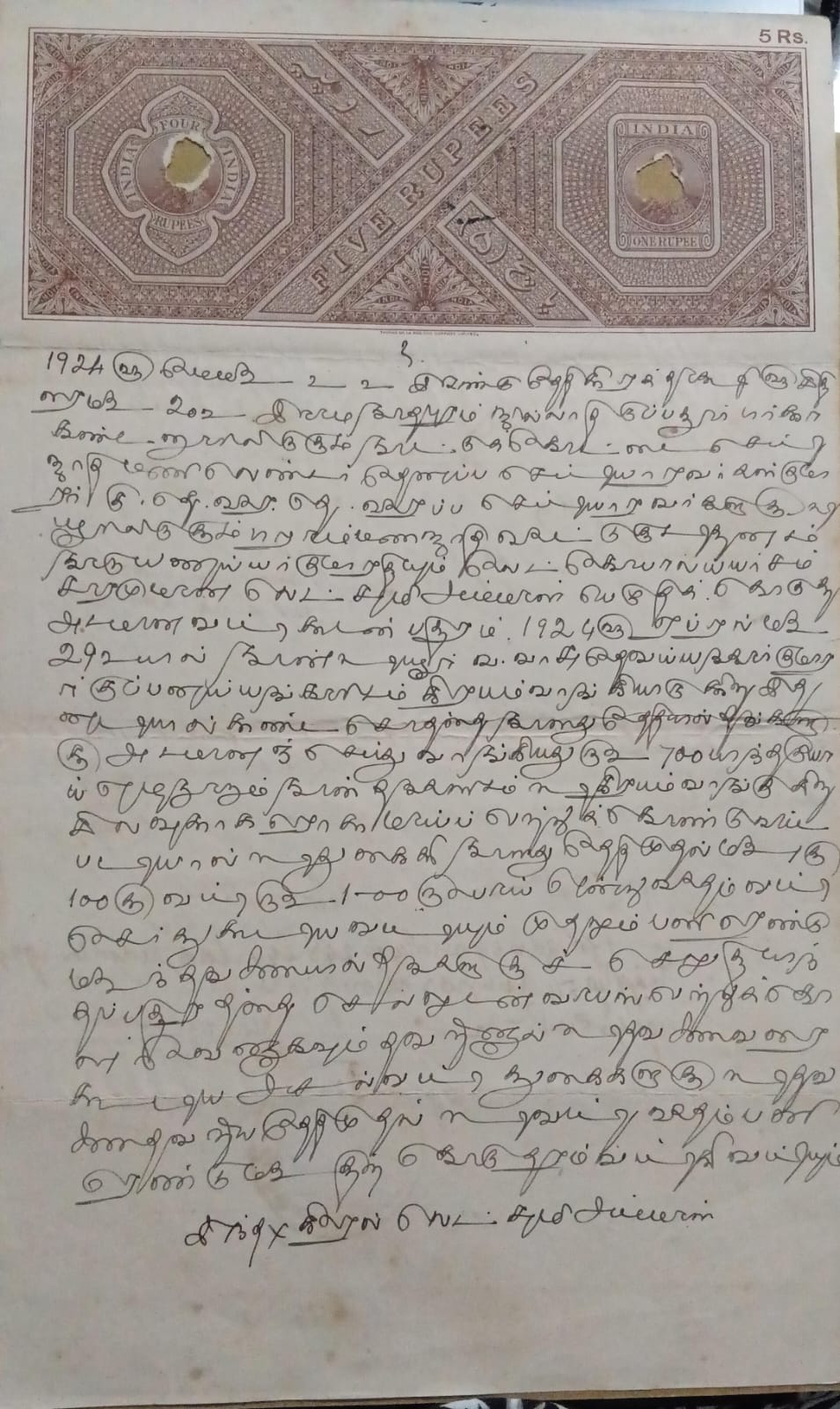 Indian stamp paper 5 rupees- watermark ?ONE RUPEE AND UNDER TEN?- GEORGE V 1923