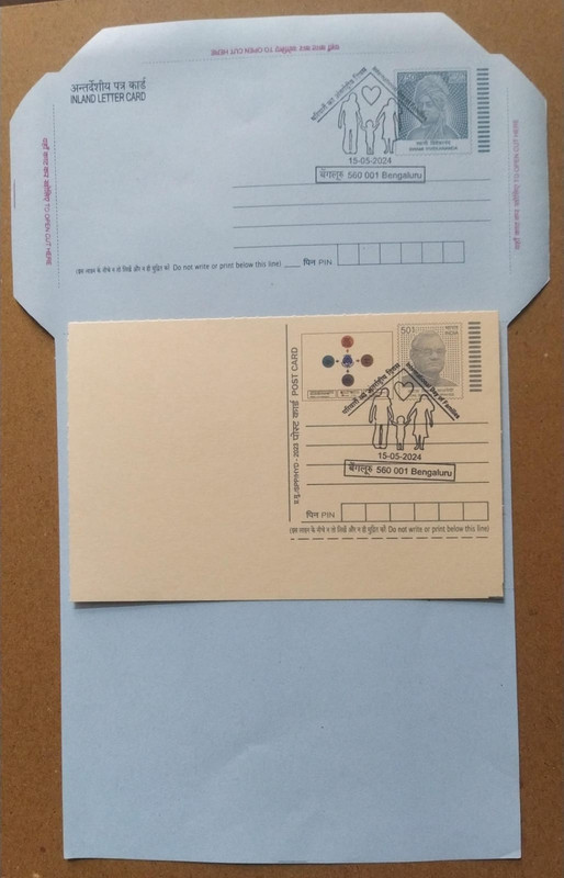 International Day OF Families (Bengaluru) Special cancellation on Postal stationary Inland letter & Postcard Released on 15-05-2024