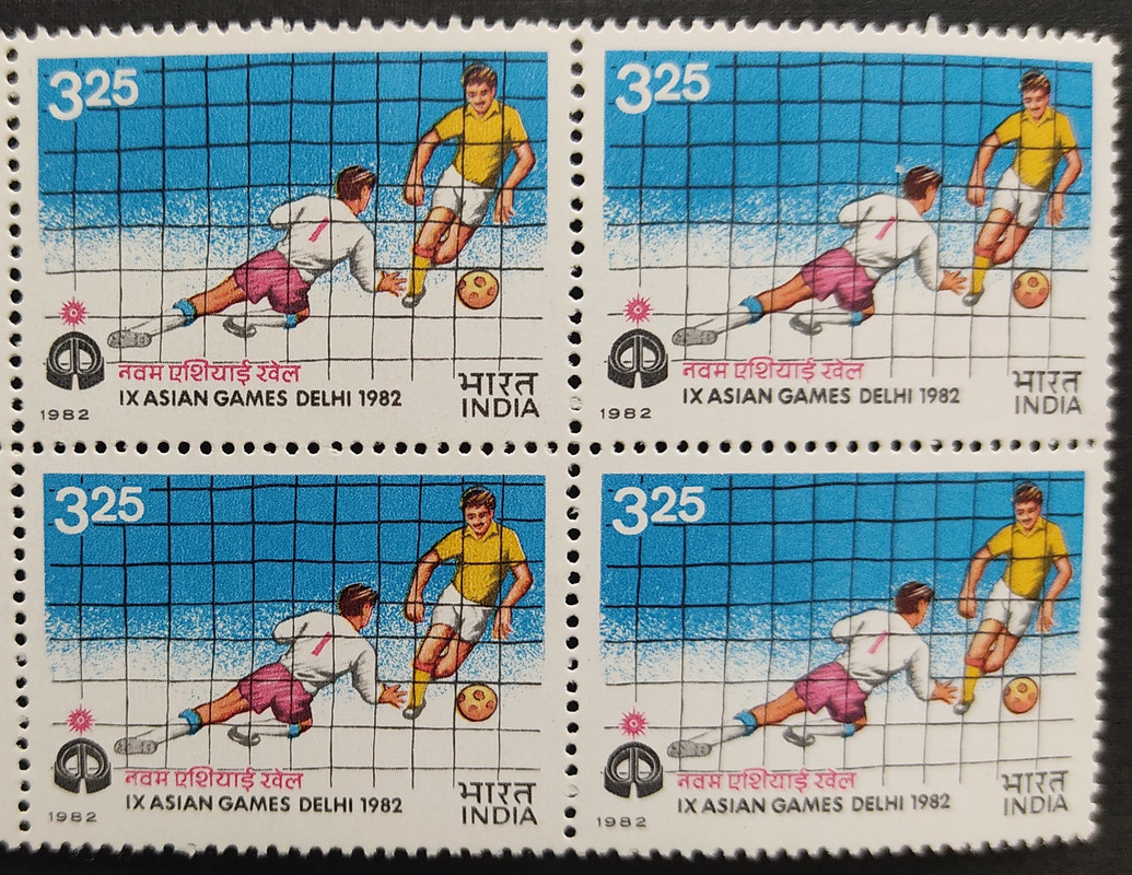 IX Asian Games, New Delhi. Sports, Asian Games, Emblem, Football (Block of 4 stamp)