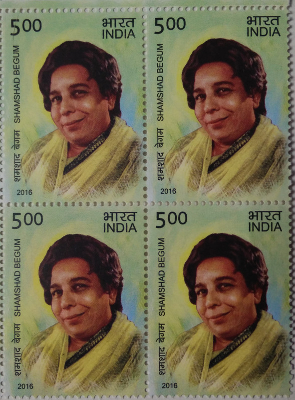 Legendary Singers of India – Shamshad Personality, Cinema, Singer, Actor, Padma Bhushan Rs. 5 (Block of 4 stamp)