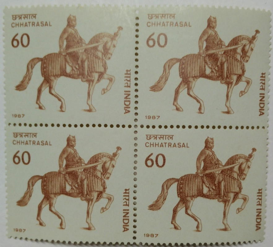 Maharaja Chhatrasal Personality, Warrior, Emperor, Author, Horse, Sword 60 P. Commemorative (Block of 4 stamp)