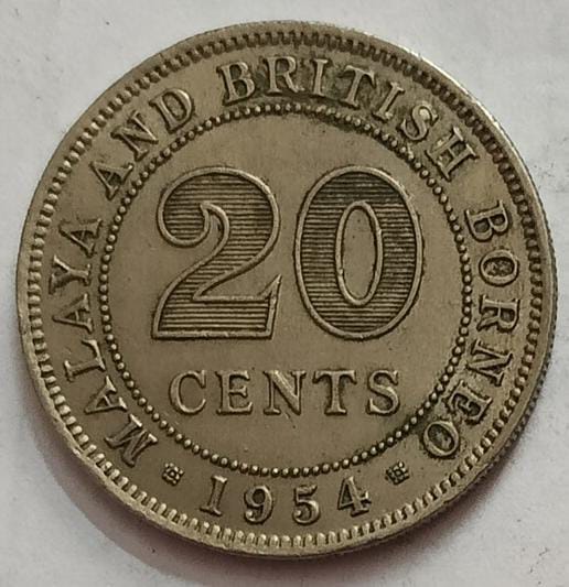 MALAYA 20 CENTS 1954 Coin (Used)