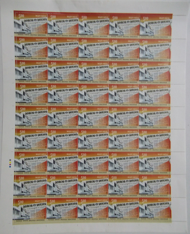 Malayala Manorma Media, Newspaper, Press, Building Rs. 5 – MNH (Stamp Full Sheets – 45 stamps)