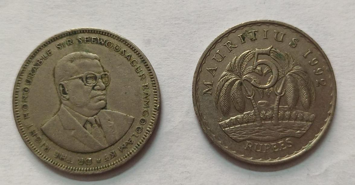 MAURITIUS 5 RUPEE 1992 (used)