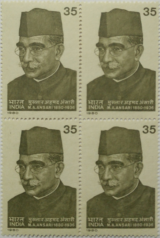 Mukhtar Ahmed Ansari. Personality, Freedom Fighter, Political Leader, Medical Practioner, Indian Naitonal Congress, 35 P. (Block of 4 stamp)