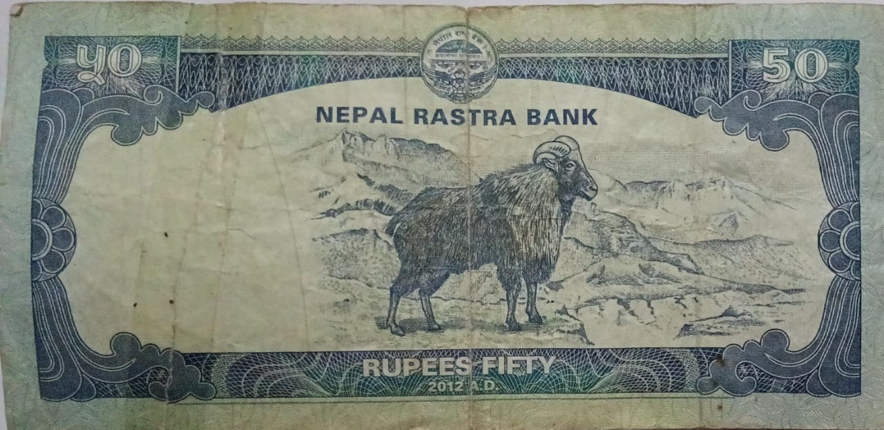 Nepal Currency 50 Rupees 2012 (Used) Slightly Damaged