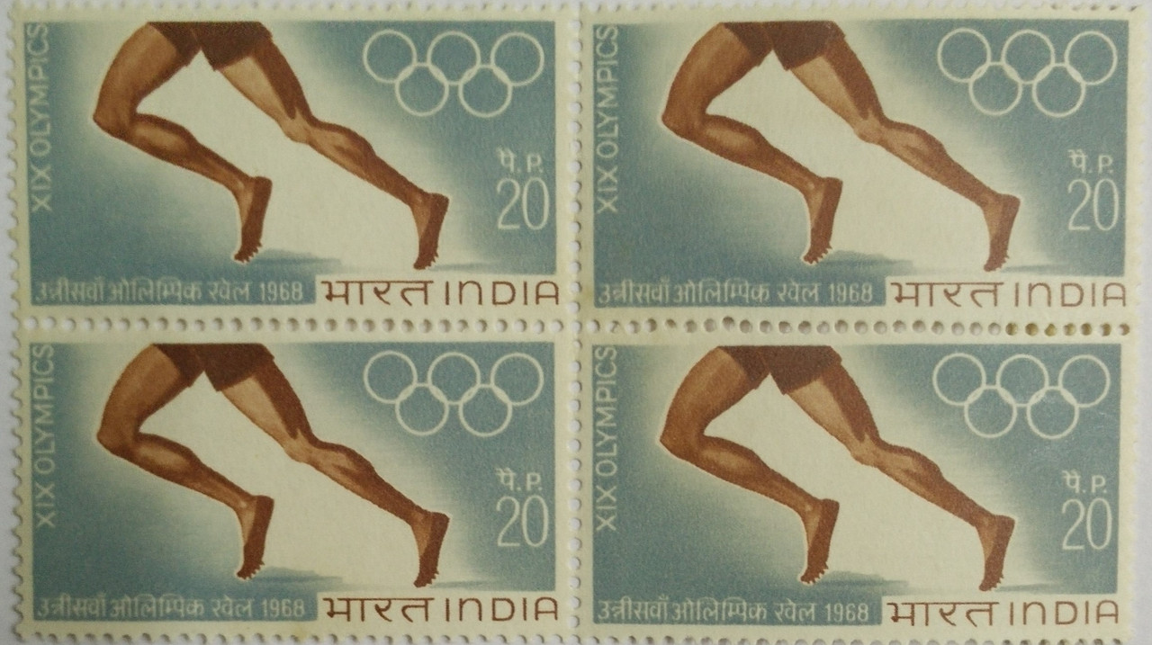 Olympic Games, Mexico. Olympic Games, Atheletes Legs, Olympic Rings, 20P. (Hinged Block of 4)