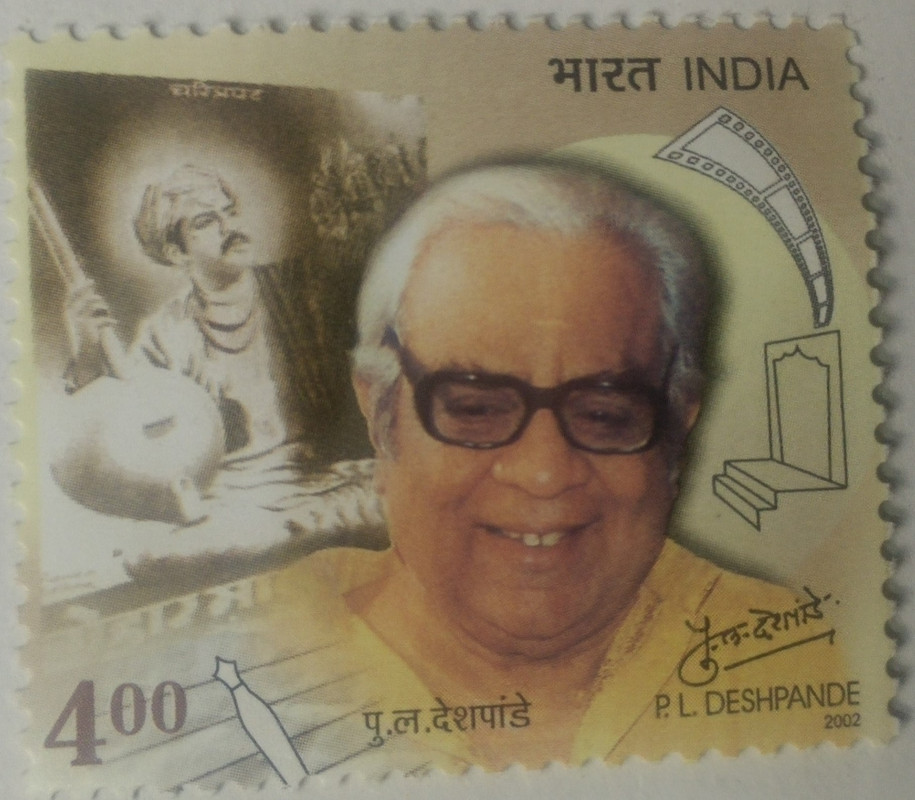P.L.Deshpande. Artist, Musician, Actor, writer (Hinged/Gum washed stamp)