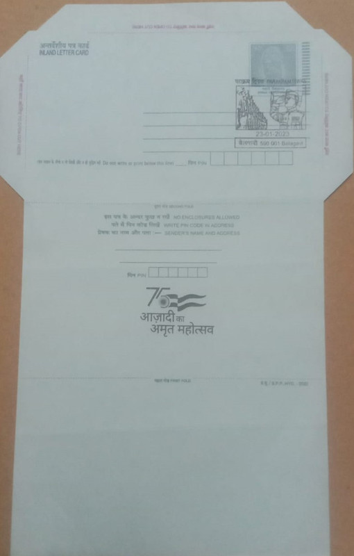 Parakram Diwas (Belagavi) Special Cancellation On Postal Stationary Inland Letter Released On 23-01-2023