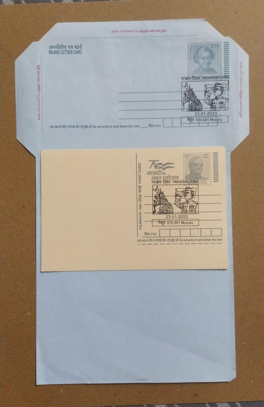Parakram Diwas (Mysuru) Special Cancellation On Postal Stationary Inland Letter & Postcard Released On 23-01-2023