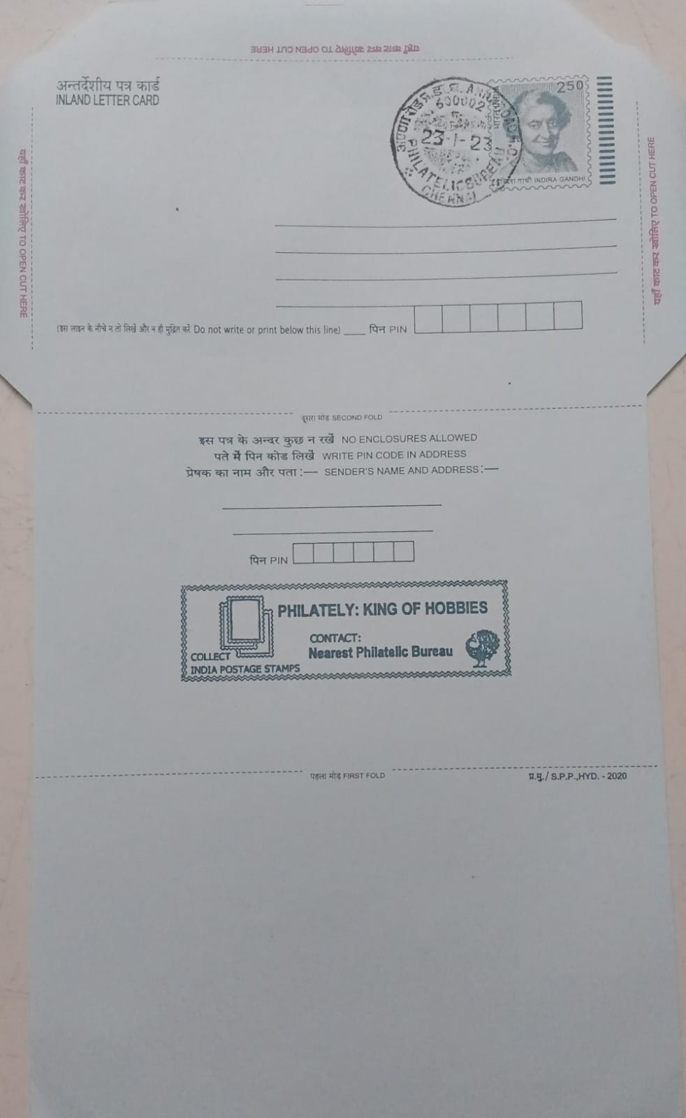 PHILATELY: King Of Hobbies (Chennai) Special cancellation on Postal stationary Envelope Inland letter Released on 23-02-2023