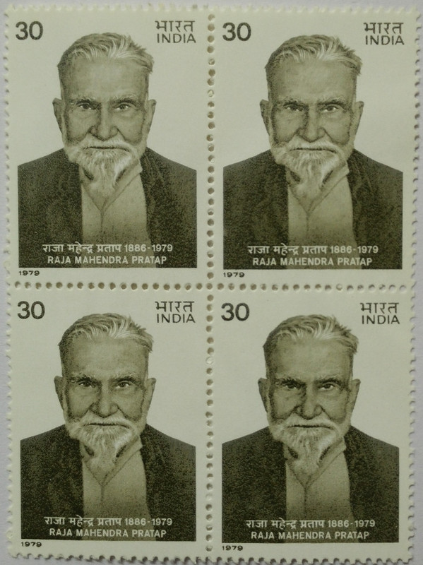Raja Mahendra Pratap. Personality, Freedom Fighter, Journalist, Writer, Marxist, Social Reformer, 30 P. (Block of 4 stamp)