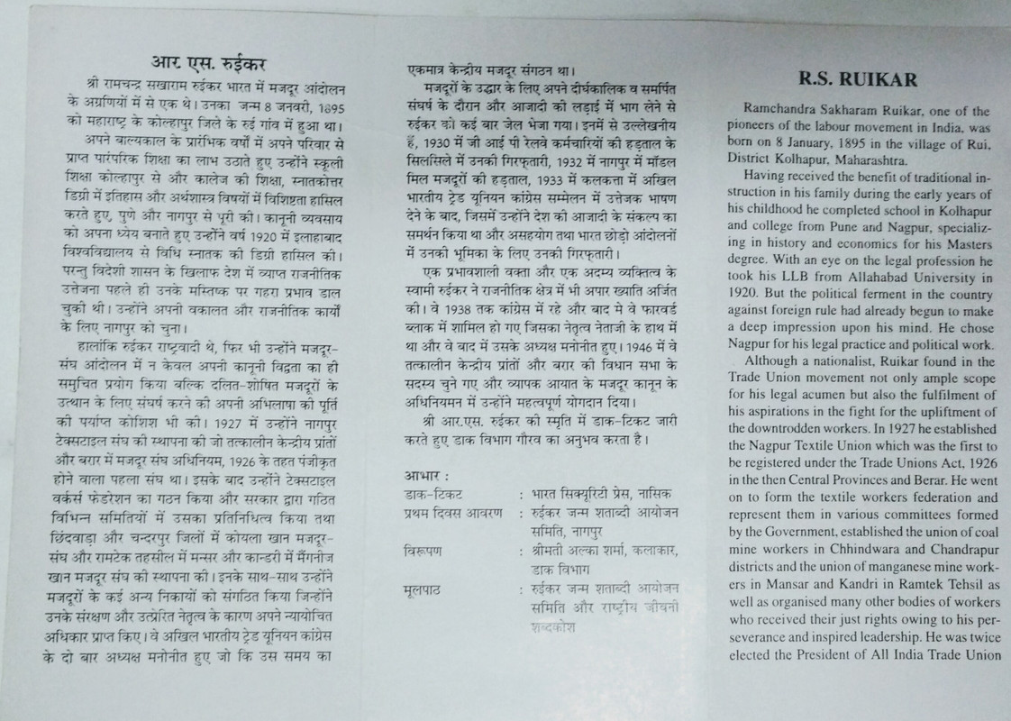 Ramachandra Sakharam Ruikar Birth Centenary. (BR)