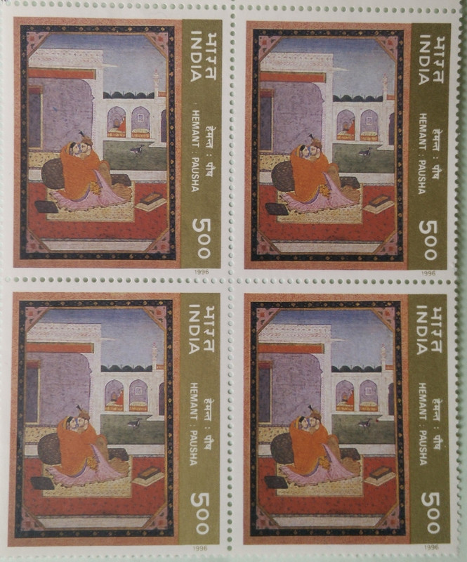 Ritu-Rang’-Miniature painting on four seasons, Hemant (Block of 4 stamp)