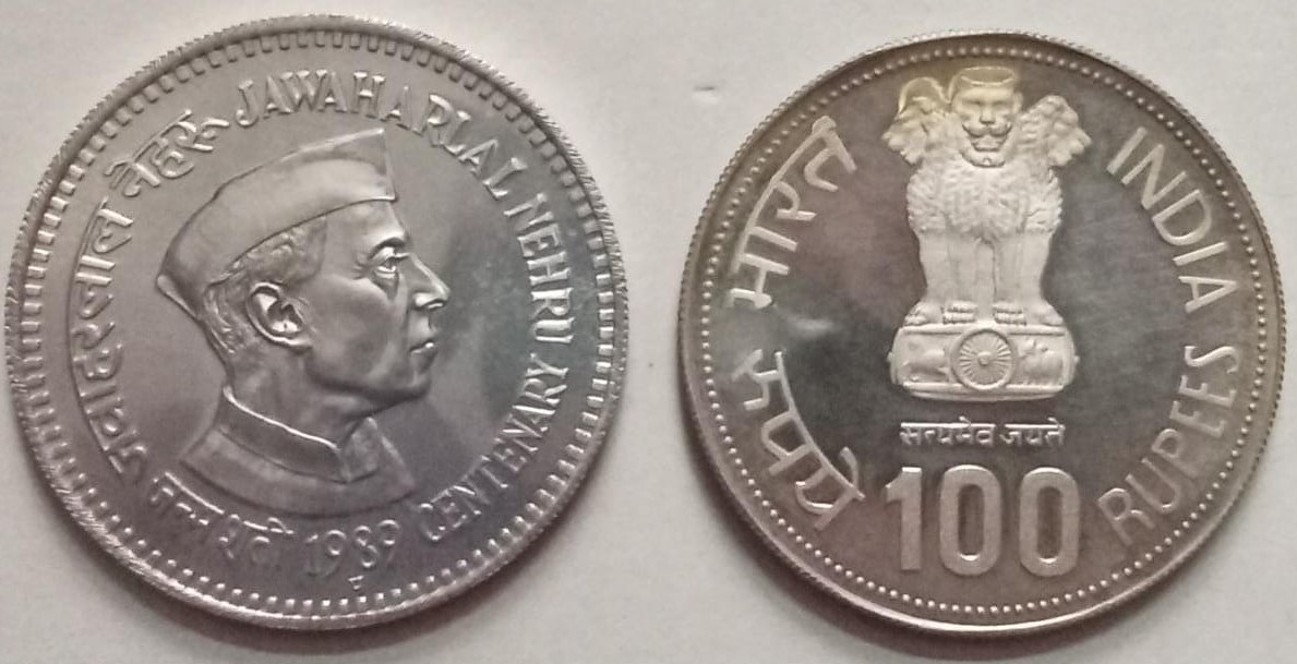 Rs.100 JAWAHARLAL NEHRU CNTENARY(PROOF COIN)