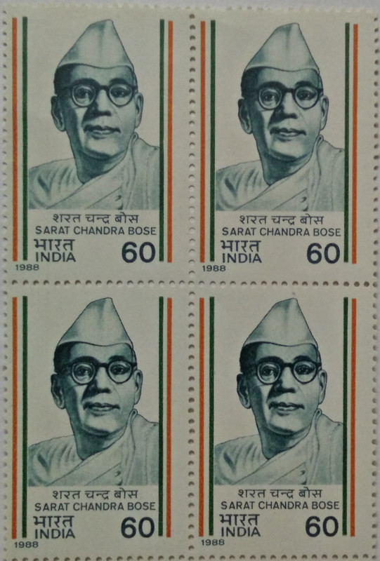 Sarat Chandra Bose Personality, Freedom Fighter, Politician, Indian National Army, Indian National Congress, Cap, Headgear 60 P. Commemorative (Block of 4 stamp)
