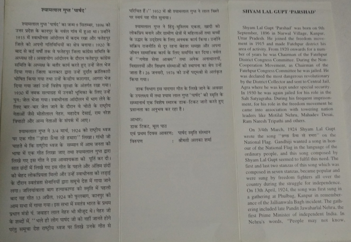 Shyam Lal Gupt Parshad Personality Lyricist (BR)