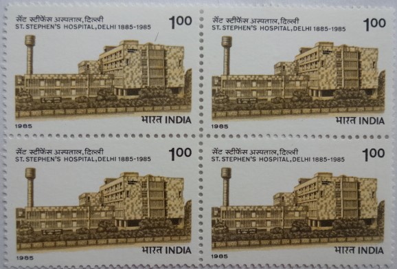 St. Stephen’s Hospital, Delhi. Hospital, Building, Centenary, Medicare, Healthcare, Medical College, Rs. 1 (Block of 4 stamp)