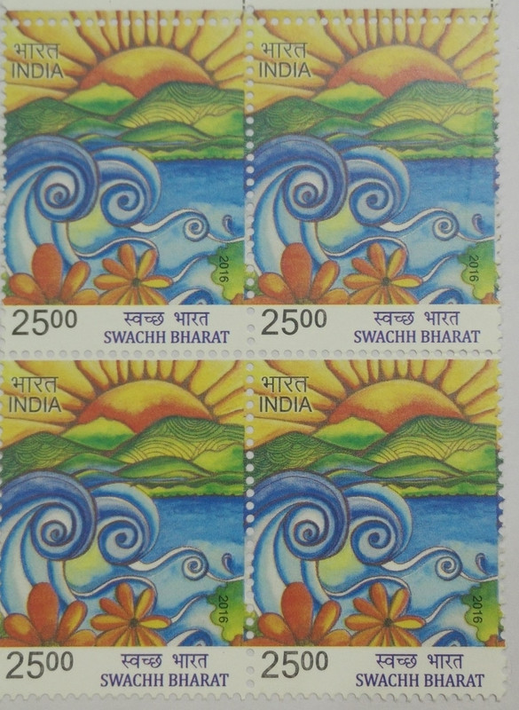 Swachh Bharat Cleanliness, Clean India Campaign, Sanitation, Hygiene, Painting Rs. 25 (Block of 4 stamp)