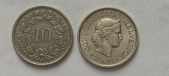 SWITZERLAND 10 Rappen 1969 Confoederatio Helvetica Coin(used)