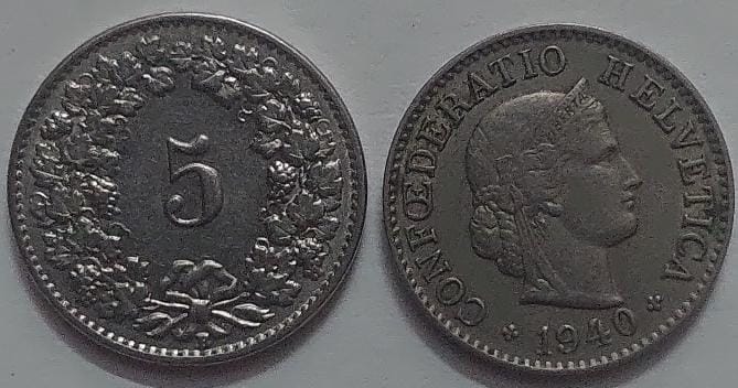 SWITZERLAND 5 Rappen1940 Coin (used)