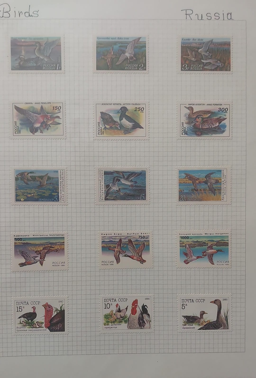 Thematic Birds Stamps of RUSSIA 15 Stamps Mint