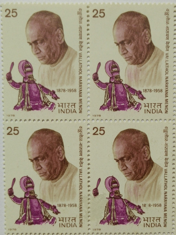Vallathol Narayanan Menon. Personality, Poet, Dance, Kathakali, Costume, Classical Dance, Headgear, Mask, Costume, 25P. (Block of 4 stamp)