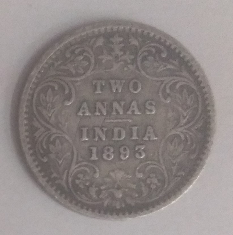 British India Coin VICTORIA EMPRESS-TWO ANNA 1893(Used)