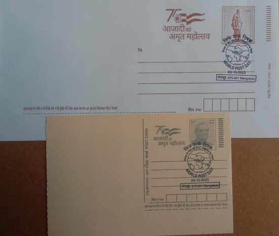 World Post Day (Mangaluru) Special cancellation on Postal stationary Envolope & Postcard Released on 09-10-2023