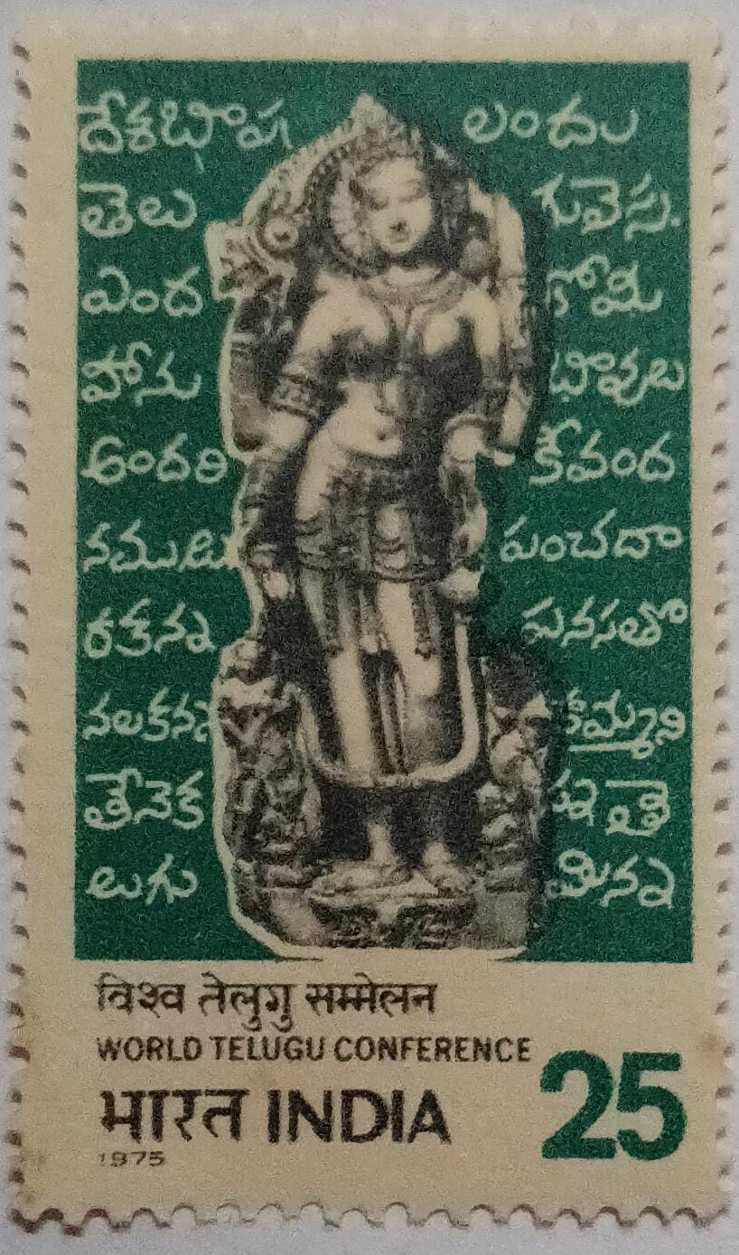 World Telugu Conference. Language, Convention, Learning, Saraswati, Goddess, Script, Jainism, 25 P. (Hinged/Gum washed stamp)