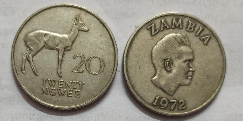 ZAMBIA 20 NGWEE 1972 Coin (USED)